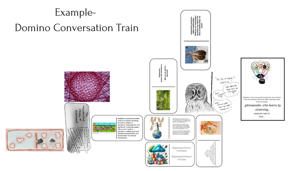 Invite conversation participants to use the blank domino template to capture a “big idea” about assessment that is surfacing for them in their educational context(s) and or that emerged from listening to one of the Reimagining Literacies Assessment podcasts. This may be an idea that has moved them, provoked them, challenged them, and/or inspired them.