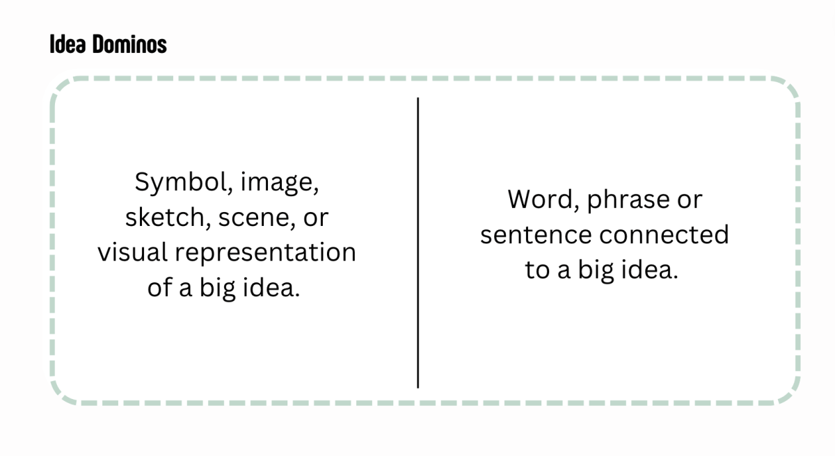Each of domino halves can address separate or similar big ideas. Encourage participants to get creative and use whichever materials call to them (draw, paint, sketch, collage, digital art, etc.). We have designed a blank domino template for participants to create their domino.